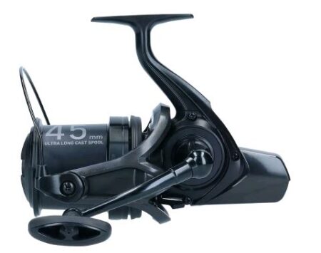 Il Crosscast 45 scw è un mulinello da Carp dotato di bobina dal profilo di 45 mm di lunghezza: rispetto ad una bobina tradizionale a profilo più basso, questa caratteristica favorisce lanci più lunghi.